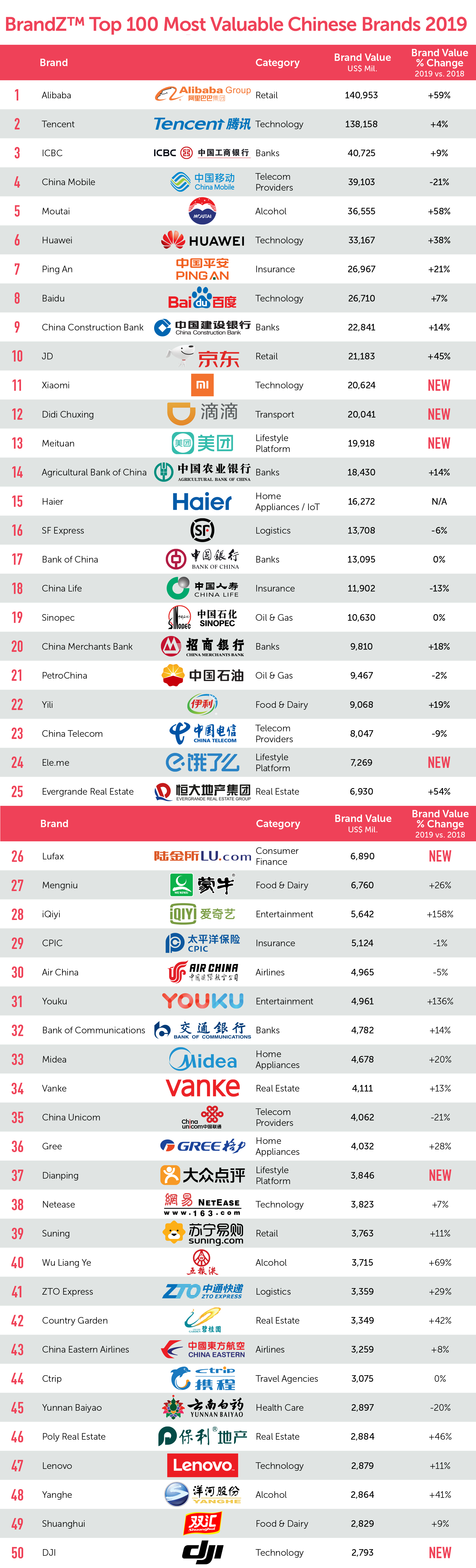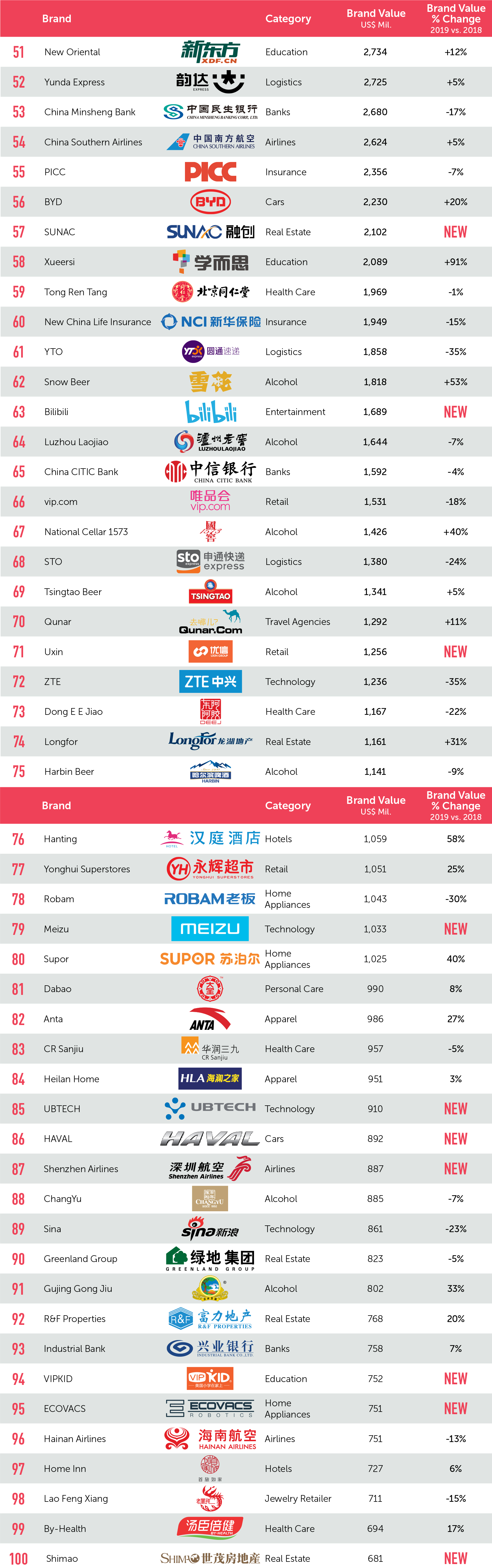 - Chinese unicorn brands have their most recent valuation publicly available. (In prior years, only publicly-traded or audited companies were eligible).