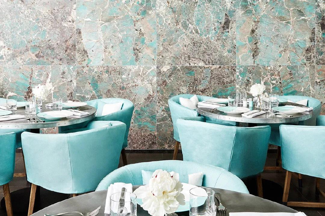 The Tiffany Blue Box Café by the luxury American brand abandoned superfluous and ostentatious decorations and only uses the brand’s iconic robin egg blue to highlight its high-end premiumness.