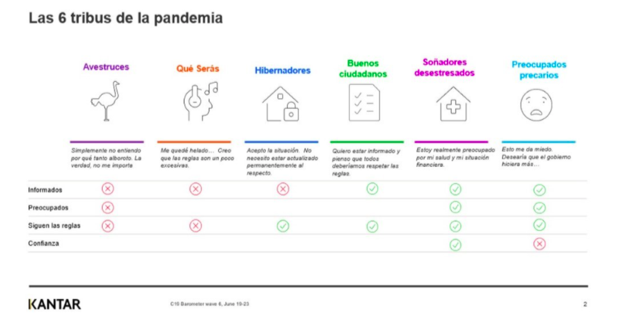 El Barómetro COVID-19, estudio que abordó Kantar desde que comenzó la pandemia para entender el ánimo y la percepción de los consumidores con respecto a las marcas, descubrió diferentes “tribus” a las que las marcas deben prestar atención. Se trata de una segmentación nueva de consumidores realizada a partir de su percepción de las marcas (y de la vida) en este contexto de pandemia.