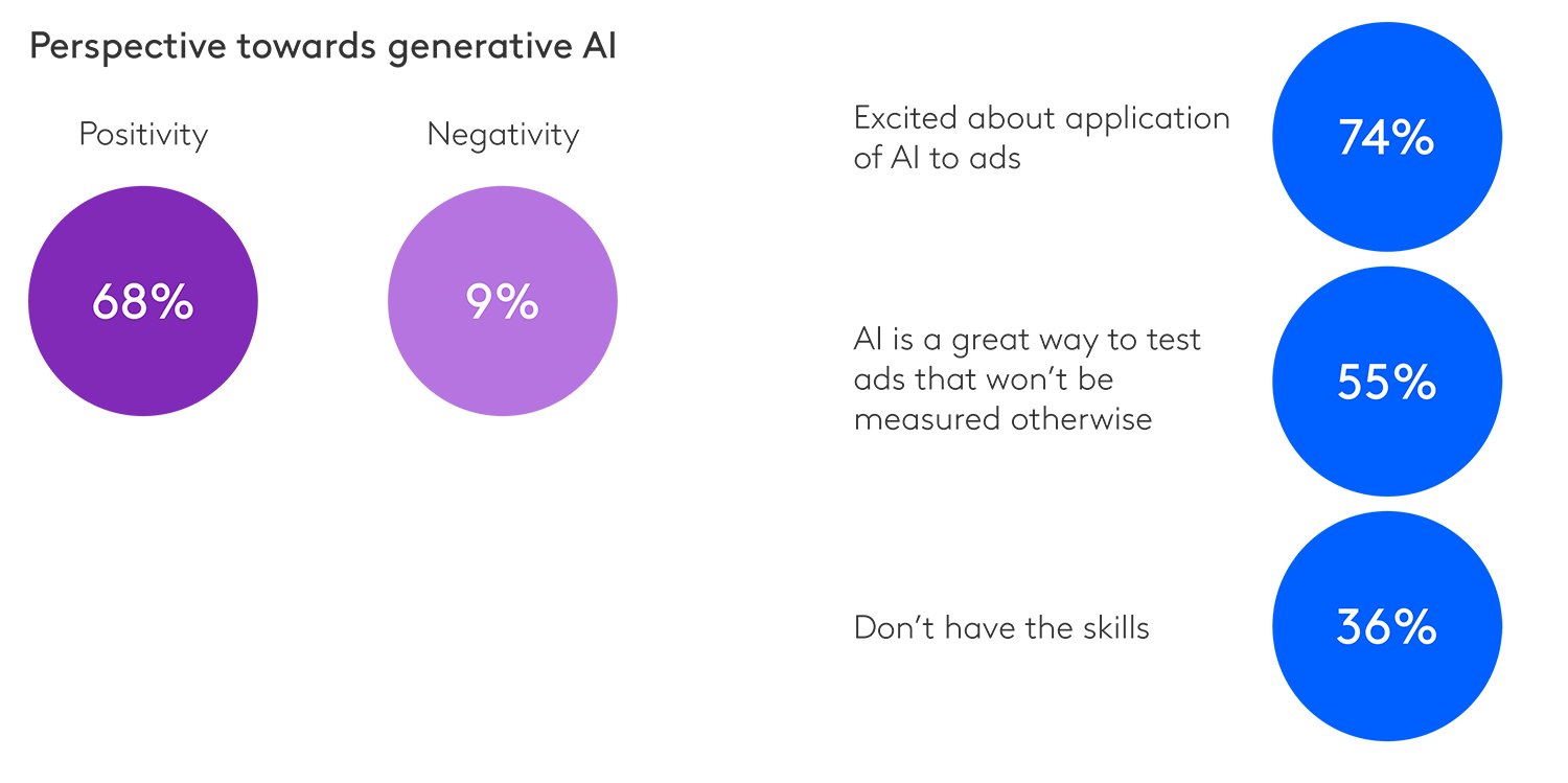 This means that there is still effort to be made to embrace this new technology and integrate into our work lives. Over one third (36%) of marketers feel their team doesn’t have the right skills to use generative AI. Training is a necessity to power up and not fall behind those who are already making great use of AI’s capabilities in their creative and media planning.